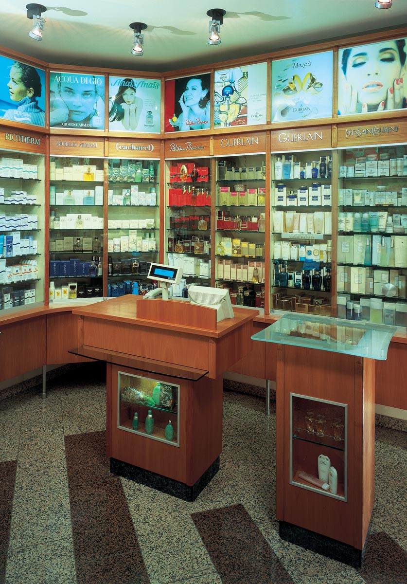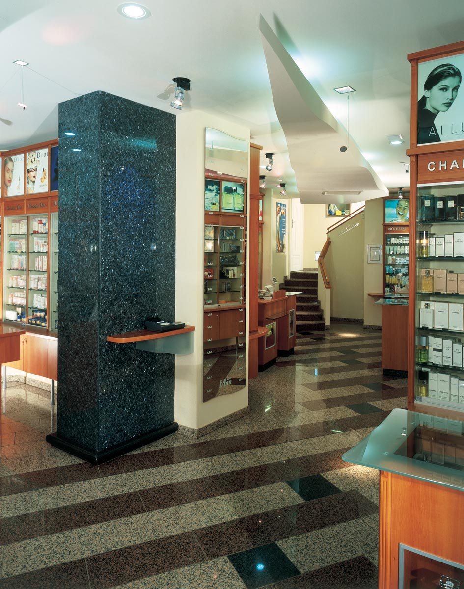 Parfumerie Fann, Brno, Nám. Svobody. Návrh interiéru, Výrobní dokumentace, Realizační dozor. Realiazace: COTTO Lysice, 1998.