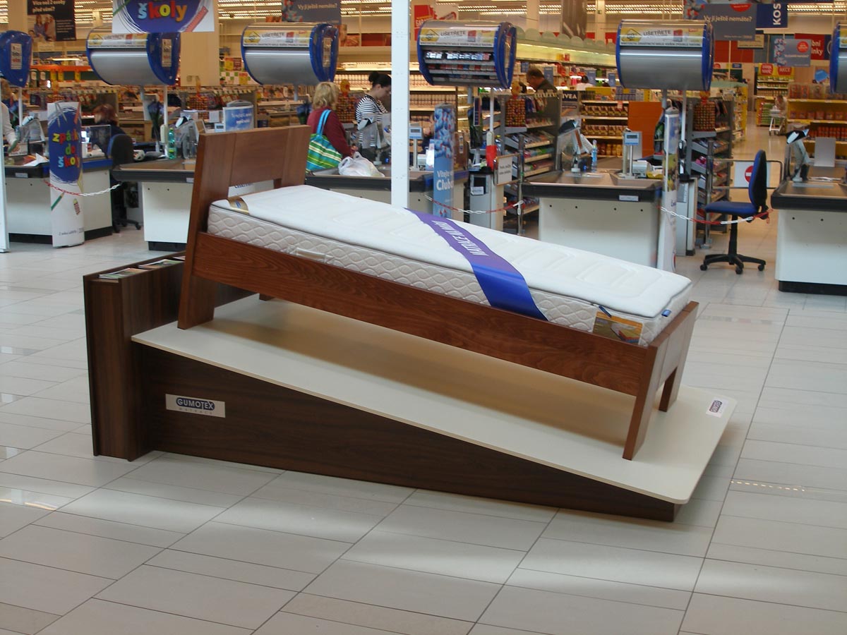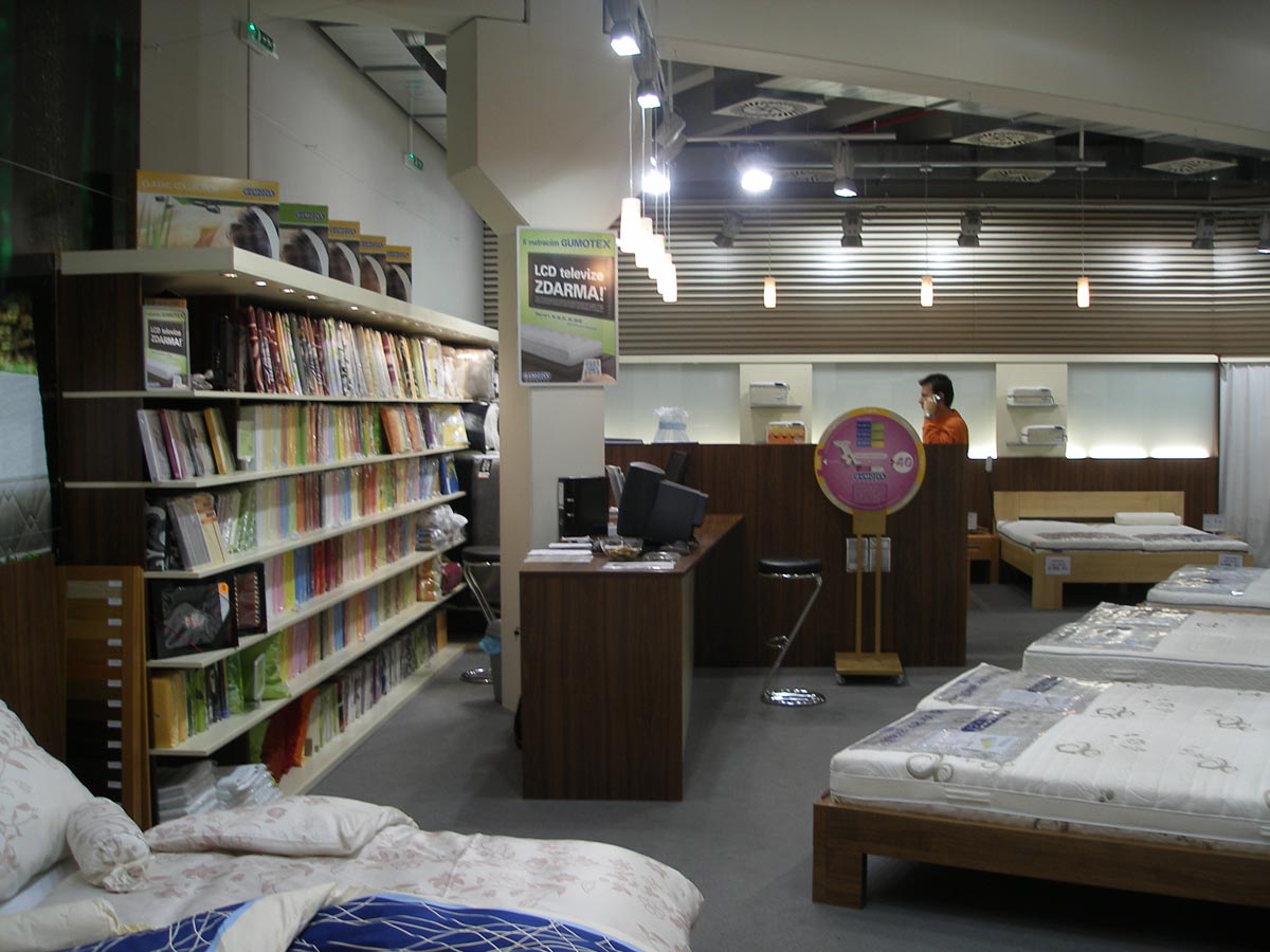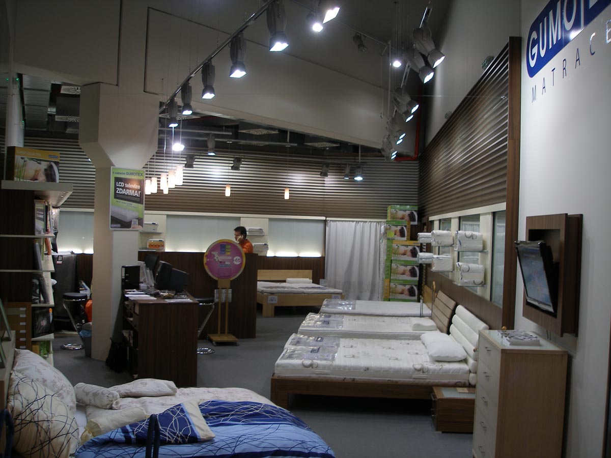Návrh interiéru prodejny matrací. Návrh navazuje na komplexní návrh jednotného obchodního systému který je uplatňován v rámci sítě vlastních a spolupracujících prodejen. 2011